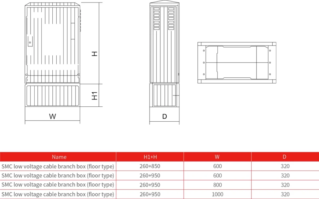 DFW type low-voltage cable branch box box is only made of SMC material by high temperature compression molding; it has the advantages of good impact resistance, bending strength, aging resistance, friction resistance, corrosion resistance, beautiful and durable, convenient installation, high dielectric strength, arc resistance, high flame retardancy, etc.; it can meet the needs of various harsh environments and places in outdoor engineering projects; it can be equipped with knife melt switches, molded case circuit breakers, bar switches and bus systems, etc.; it is suitable for urban and rural power grid transformation, municipal engineering, The transmission and distribution of electricity in public places such as residential areas and high-rise buildings is only used for the control and protection of cable dry distribution lines and branch lines.