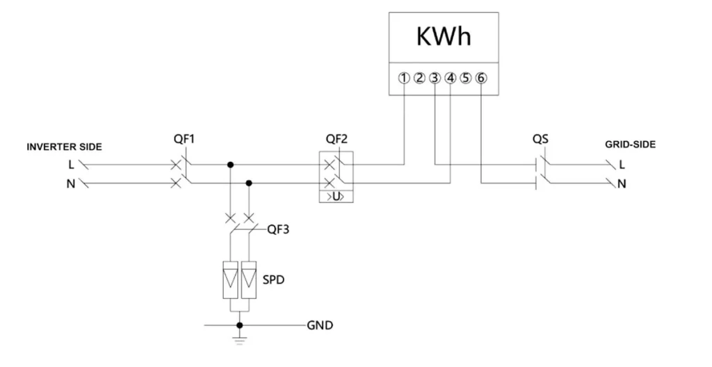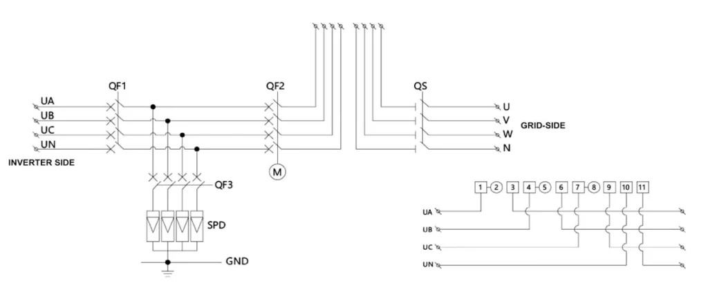 Electrical circuit diagram of three-phase AC grid-connected box below 30kW