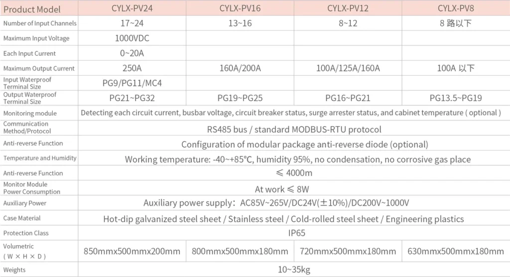 - The power module in the combiner box can be connected to 1000DCV photovoltaic voltage;