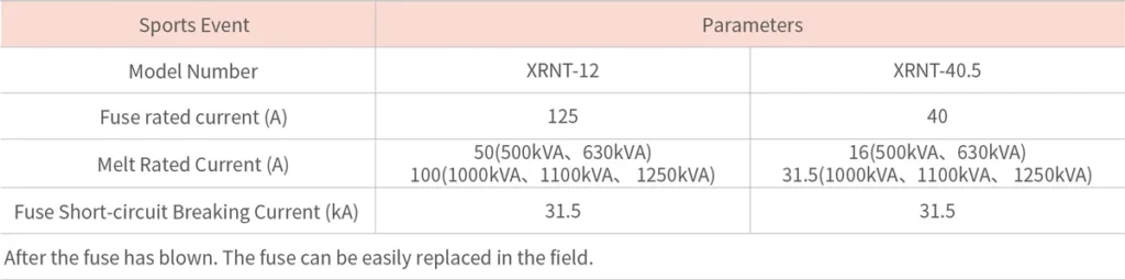 Technical parameters of high-pressure oil-immersed fuse