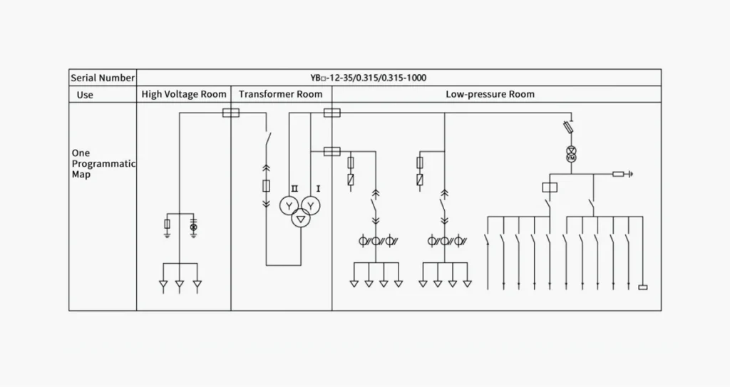 The box transformer is divided into three parts: high-voltage chamber, low-voltage chamber and transformer, which can be arranged according to the “eye” or “product” type.